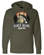 Ce hoodie FISH ON 2 fusionne deux passions avec élégance : la pêche et l'esthétique western. Conçu pour les pêcheurs qui apprécient le style country authentique, il arbore un design qui célèbre la vie en plein air et l'aventure. Le motif évoque l'esprit de la pêche tout en s'inscrivant dans l'univers cowboy, créant une harmonie visuelle unique. Parfait pour les sorties à l'eau ou simplement pour afficher votre amour de la pêche avec panache, ce chandail devient un incontournable pour ceux qui vivent au rythme de la nature et du style western.