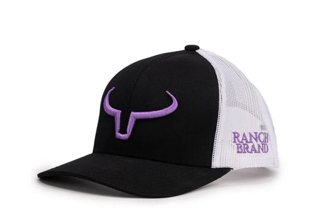 CASQUETTE TRUCKER RANCHER NOIR ET BLANC LOGO MAUVE